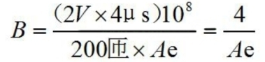 現(xiàn)在咱們來(lái)看磁芯,假定二極管是一般的一般的二極管,通態(tài)電壓大約為1V,電流為10A/200=50mA?;ジ衅鬏敵鲭妷簽?/span>1V,加上二極管的通態(tài)電壓1V,總電壓大約2V。250kHz頻率作業(yè)時(shí),磁芯上的磁感應(yīng)強(qiáng)度不會(huì)跨越