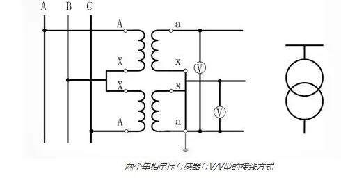 兩個(gè)單相電壓互感器V/V型的接線方法