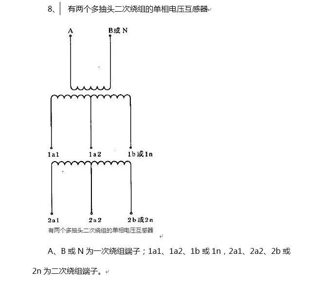 電壓互感器端子標(biāo)明應(yīng)依照下節(jié)圖示選取恰當(dāng)?shù)臉?biāo)志。
